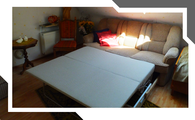 In addition to the double bed, there's a single bed, also with a good innerspring mattress. It's a fold-down bed and can be folded up during the day.