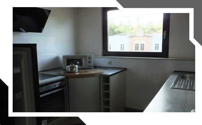 Ein Elektroherd mit Backofen bietet alle Möglichkeiten. Und das Rondell zur Rechten Platz für die Utensilien.