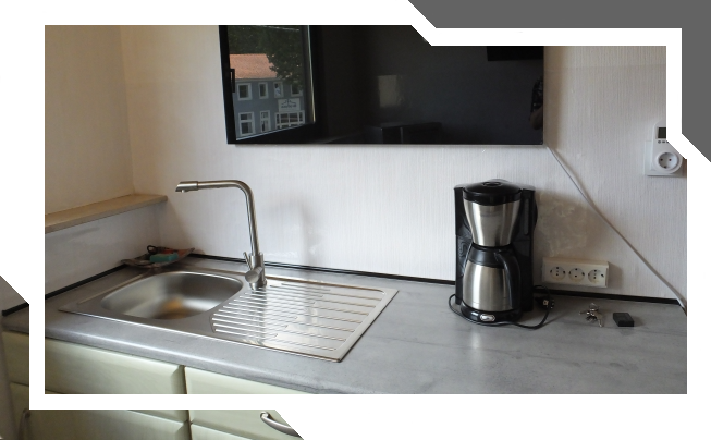PS: An der Wand die moderne Infrarotheizung.