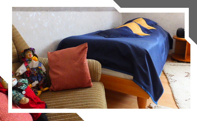 In allen Wohnräumen steht WLAN zur Verfügung mit DSL 100MBit/s. Und Dekoartikel wie die Obstschale auf dem Wohnzimmertisch sorgen für ein angenehmes Umfeld.